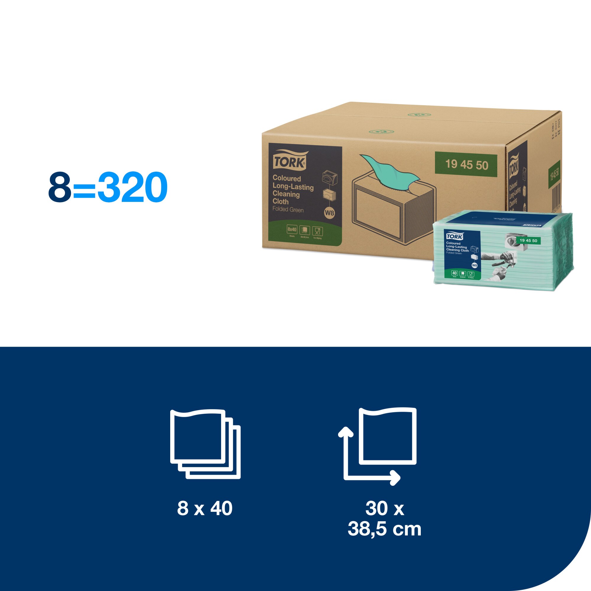TORK 194550 – barevný program – netkaná textilie W8, zelená, 8 x 40 ks - Karton