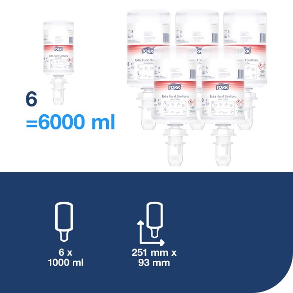 Tork Extra gelový dezinfekční prostředek na ruce s alkoholem je nejúčinnější gel v sortimentu Tork proti bakteriím, kvasinkám a všem virům. Ničí mikroorganismy, a tím brání šíření infekcí. Gel je vhodný pro každodenní hygienu rukou, je lehký a osvěžující, nezanechává lepivý pocit.