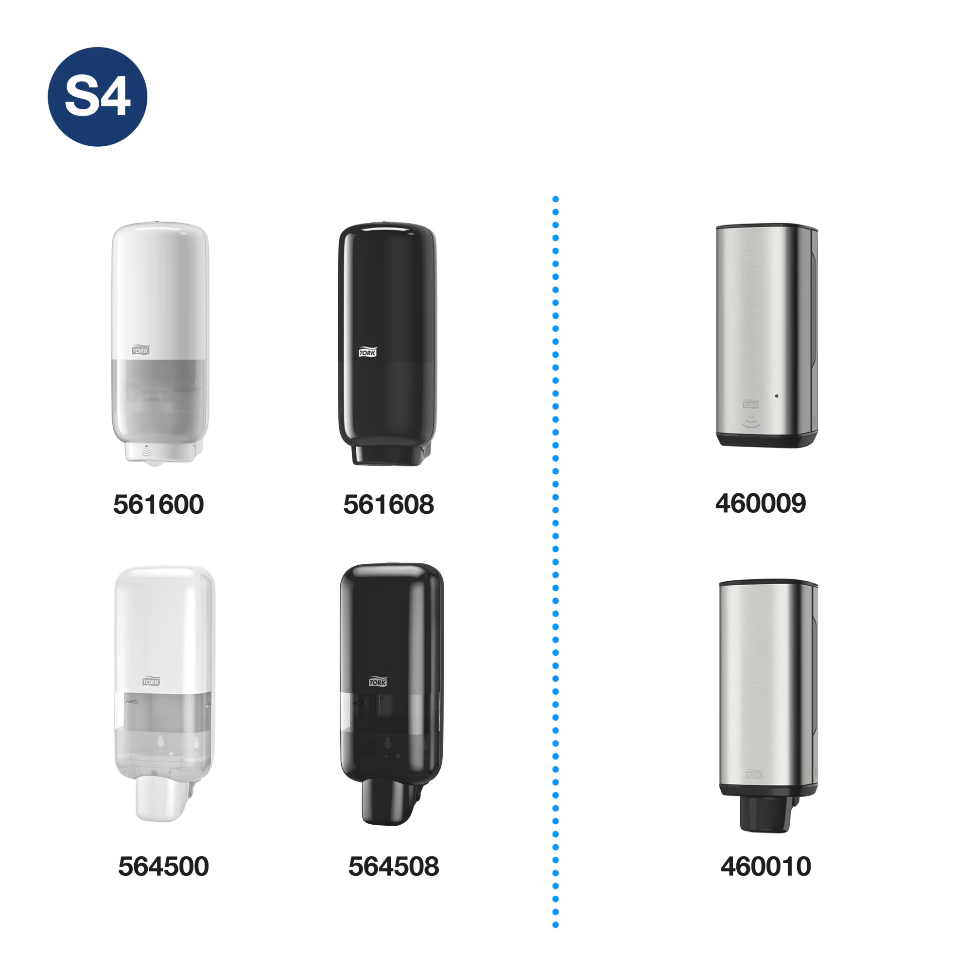 Prostředek je vhodný pro všechny Tork zásobníky na mýdla a dezinfekční prostředky s označením S4.