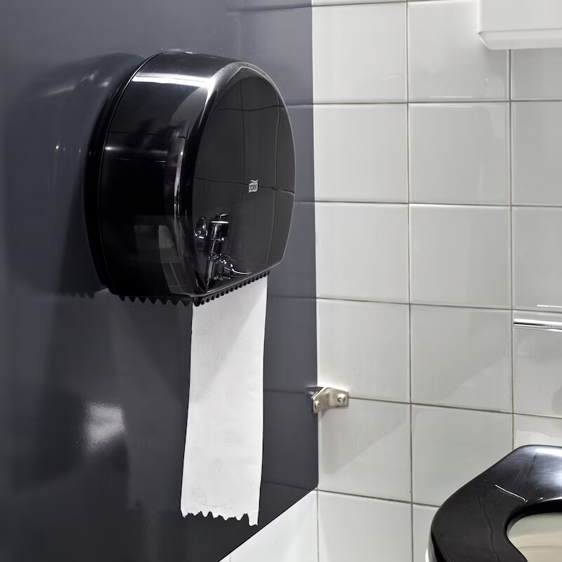 Tork zásobník na toaletní papír Mini Jumbo role v designu Elevation je ideální pro toalety a umývárny se střední až vysokou návštěvností, kde je důležitá efektivita a nízké náklady.