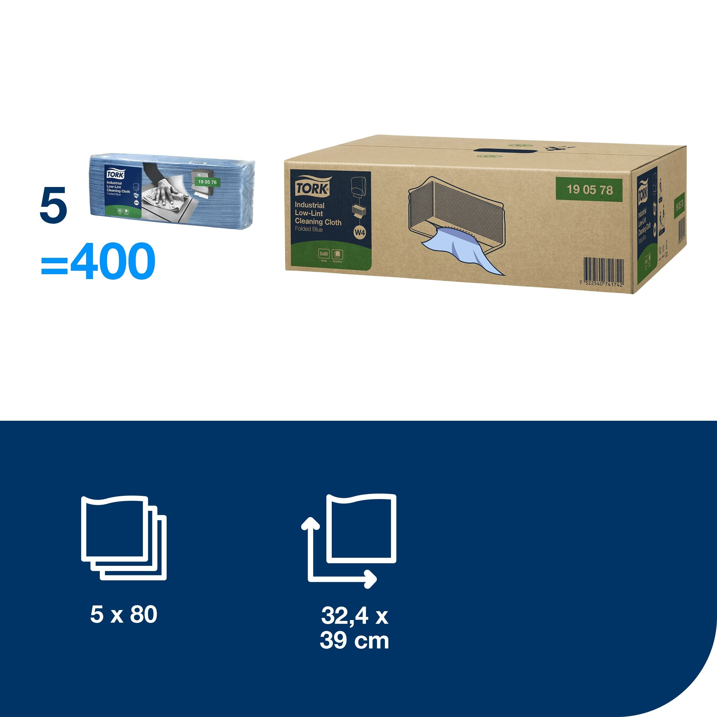 TORK 190578 – průmyslová Low–Lint čisticí utěrka W4, netkaná text., 1vr., 5x 80útr. - karton