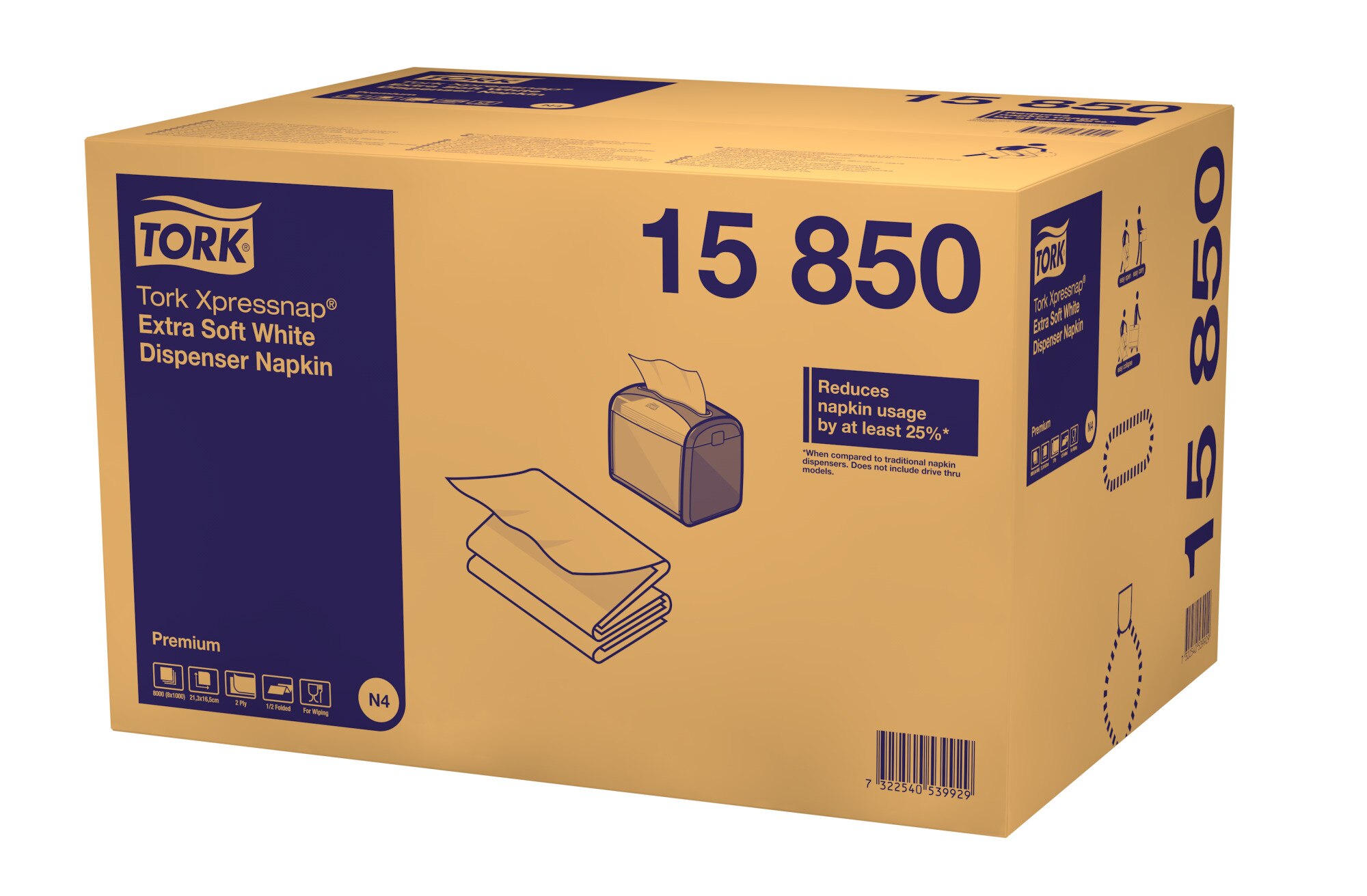 TORK 15850 – Xpressnap® extra jemné bílý ubrousek do zásobníku N4, 2vr., 8 x 1000 ks - Karton